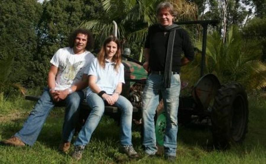 RIGHT: WAKKAS ORGANICS Partners Ben Debs, Lucy Jenkinson and Barry Ferrier with Mr Ferrier's 1948 Massey Fergusson tractor, still going strong at his organic farm in Bangalow. Written by Christian Morrow